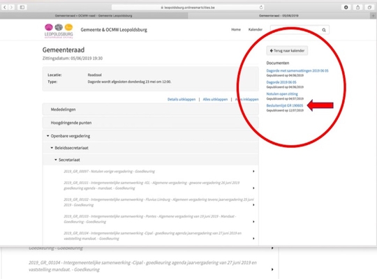 Tot nu toe duurde het meer dan een maand vooraleer je de besluiten van de gemeenteraad op de website van Leopoldsburg kon vinden.