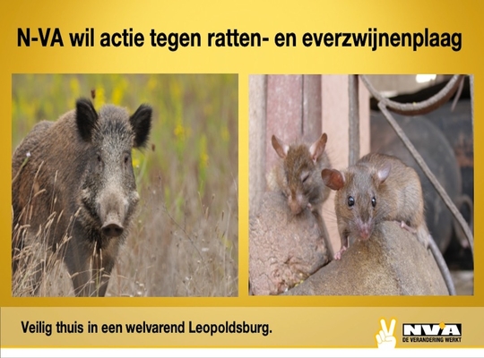 Hoeveel inwoners moeten nog melding maken van ratten- en everzwijnenoverlast alvorens de gemeente actie onderneemt? De N-VA bond de kat de bel aan op de gemeenteraad. De meerderheidspartijen legden uit hoe inwoners zelf een ratten- plaag kunnen bestrijden of hoe men everzwijnen kan afschrikken. Een schepen voegde daar nog fijntjes aan toe dat inwoners zelf vaak de oorzaak zijn van een rattenplaag, omdat ze afval dumpen in de omgeving van hun woning. Over een concrete oplossing of aanpak bleef het muisstil.